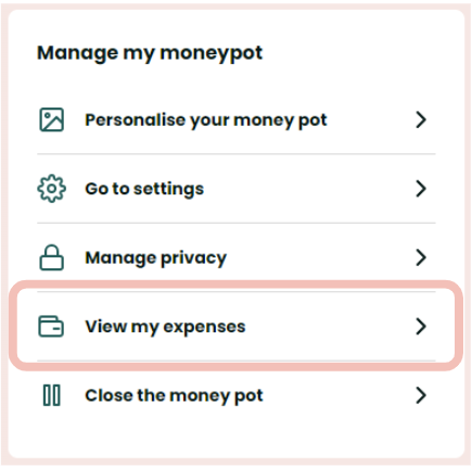 3️⃣ In the Manage my money pot box, click on View my expenses.