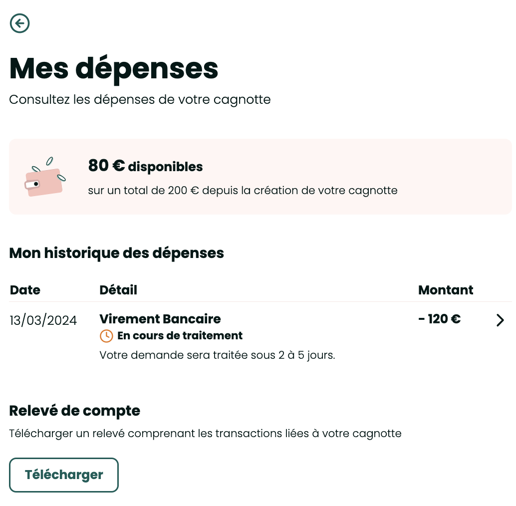On the next page, you will have a summary of the spending requests made and the amount available in your money pot.