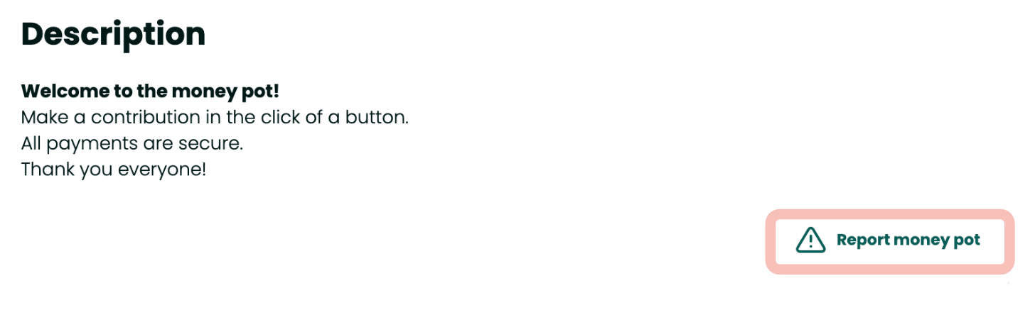 π¨ Please note: No abusive reports will be taken into account. If the money pot you report does not pose a risk of fraud and your report does not contain any evidence, it will not be processed. The money pot will stay online.