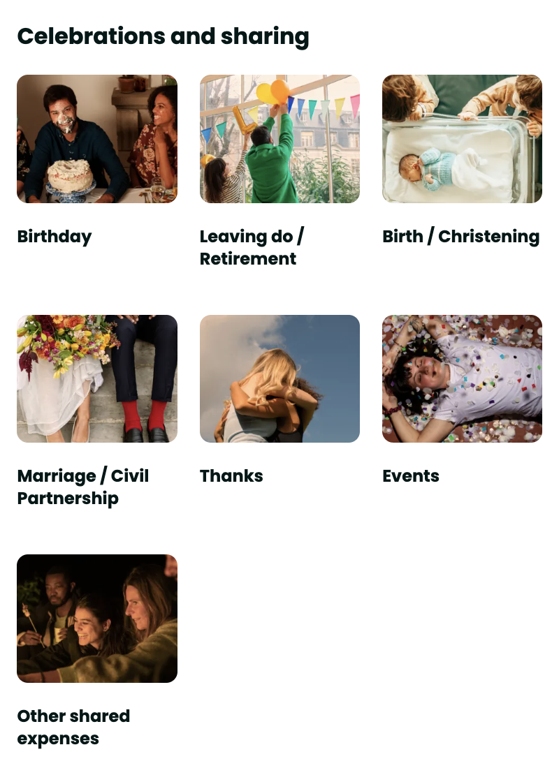 💡 Celebrations & Sharing money pots cannot be made public and are therefore not referenced in our search engine.