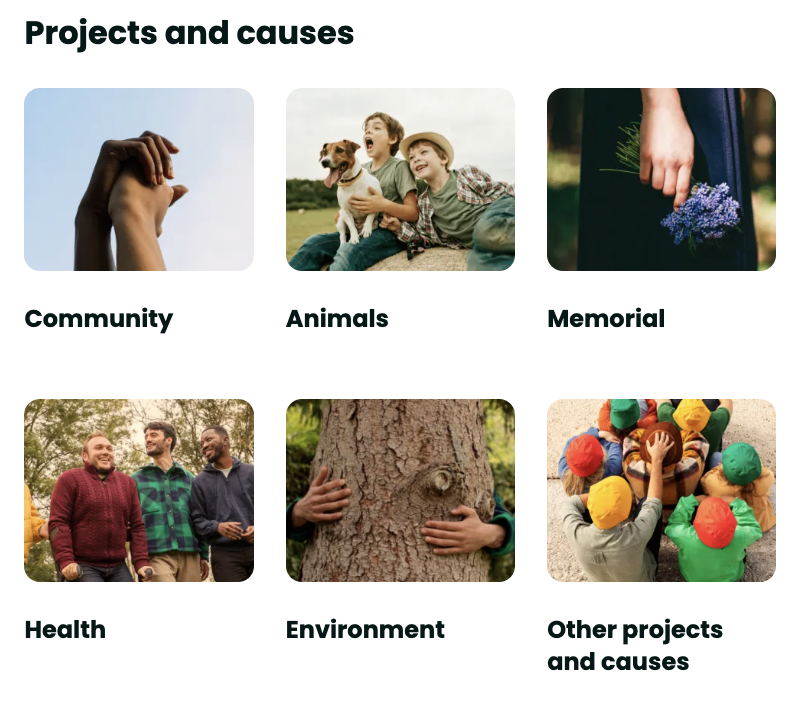 🎯 Good to know: These kinds of money pots may be displayed on our site when they are public. They are then listed among the “Projects & Causes” money pots on the Support a cause tab. On the other hand, Funeral money pots will not appear in our search engine, even if they are public.
