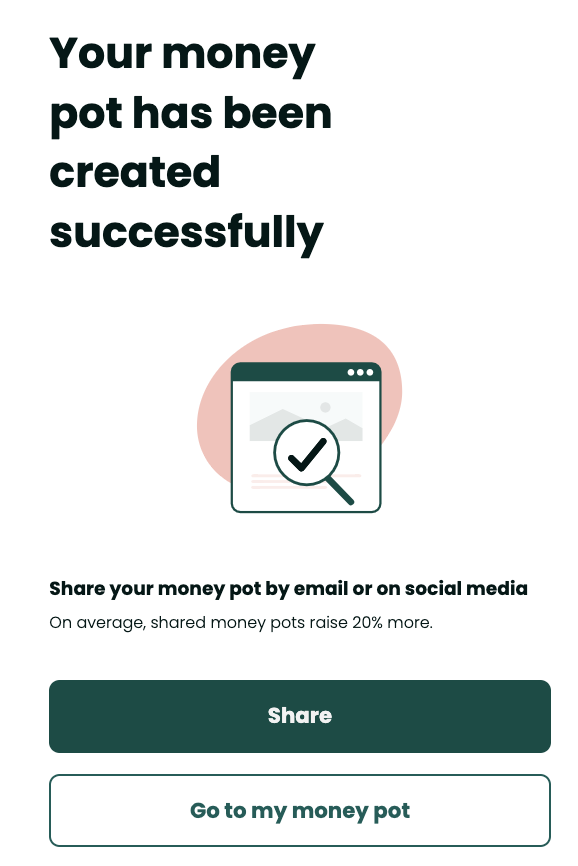 🎉 Congratulations, your money pot is created, all you have to do is share it with those around you!