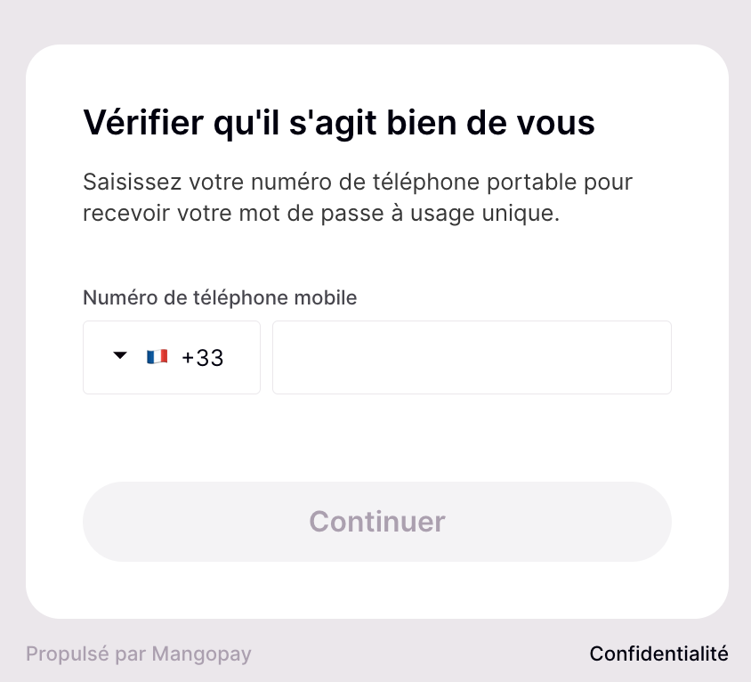 3️⃣ You will be redirected to a page hosted by Mangopay. Confirm that you have read the T&Cs by ticking the box;