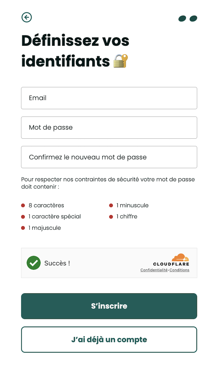 🎯 À savoir : Le mot de passe doit contenir au minimum 8 caractères, dont une majuscule, une minuscule, un chiffre et un caractère spécial (un signe de ponctuation par exemple).