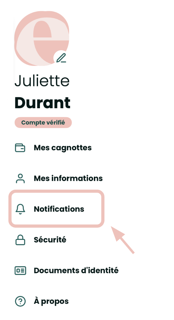 2️⃣ Dans le menu de votre profil, cliquez sur Notifications ;