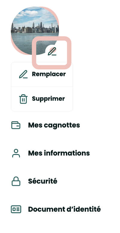 Vous avez la possibilité de modifier l'image par défaut de votre compte afin d'ajouter votre propre photo. Il vous suffit de vous rendre dans le menu de votre compte, et de cliquer sur l'icône