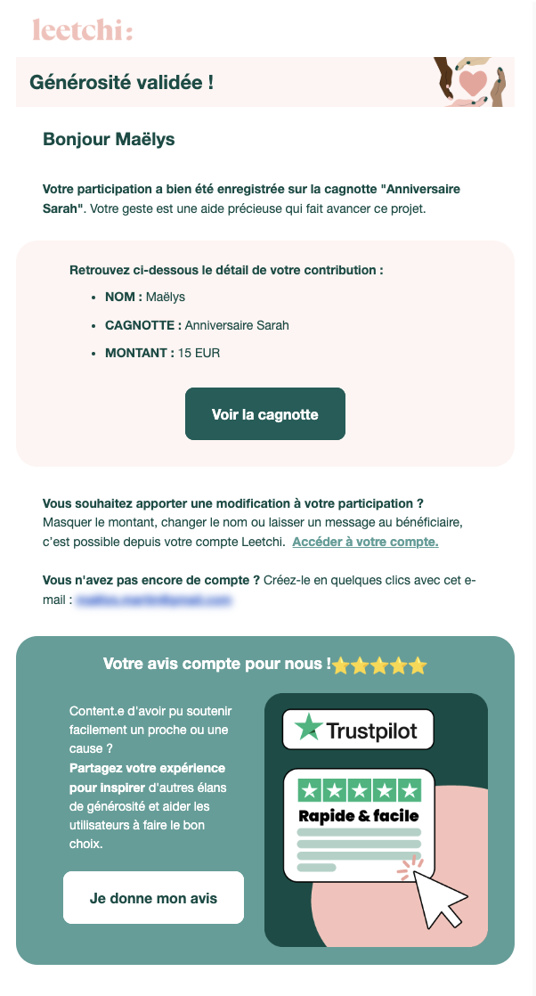 Vérifiez sur la cagnotte si votre don a bien été ajouté.